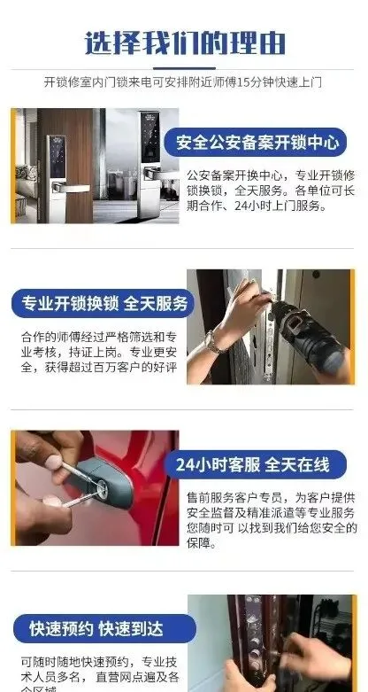 锁具问题,随时为您解决!我们是您身边的锁具安全守护专家,时刻准备着用专业、快捷、可靠的服务,让您出入无忧,生活安心。
