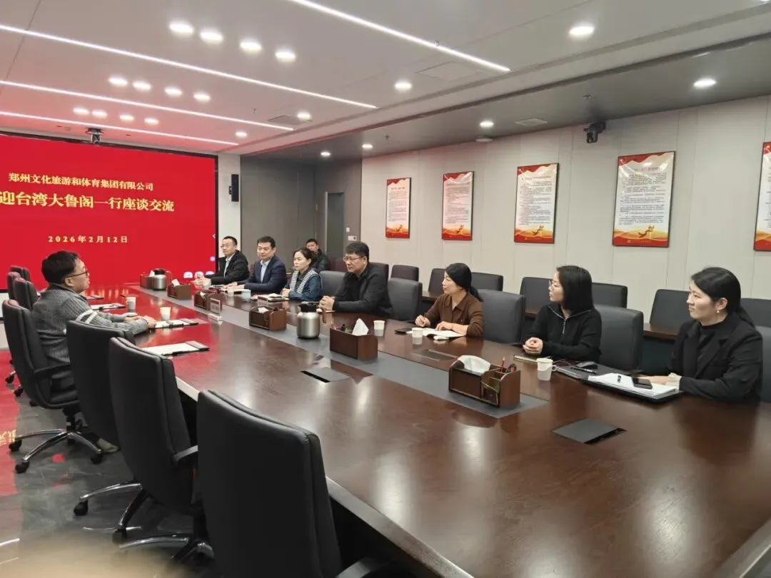 2026年2月12日,郑州文旅体集团与台湾大鲁阁举行交流座谈会,双方围绕体育场馆业态创新、空间活化及产业合作模式深入探讨,紧扣“催生新物种、搭建新场景、培育新业态、定义新范式”核心方向,谋划郑州体育消费新场景。郑州文旅体集团党委委员、副总经理严文斌,郑州体育产业集团党支部书记、董事长陈苗苗,副总经理黄亚洲等出席,集团财务管理部、法务风控部负责人及台湾大鲁阁团队参会,务实对接合作项目。