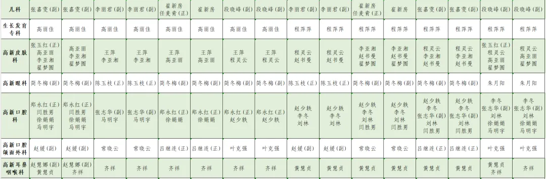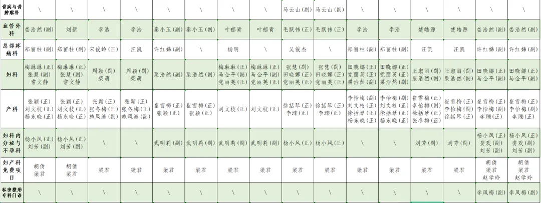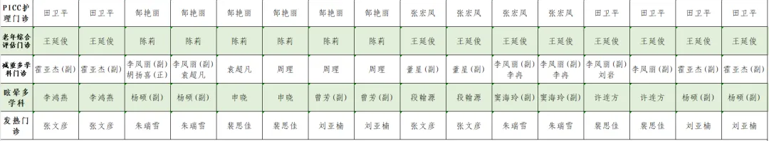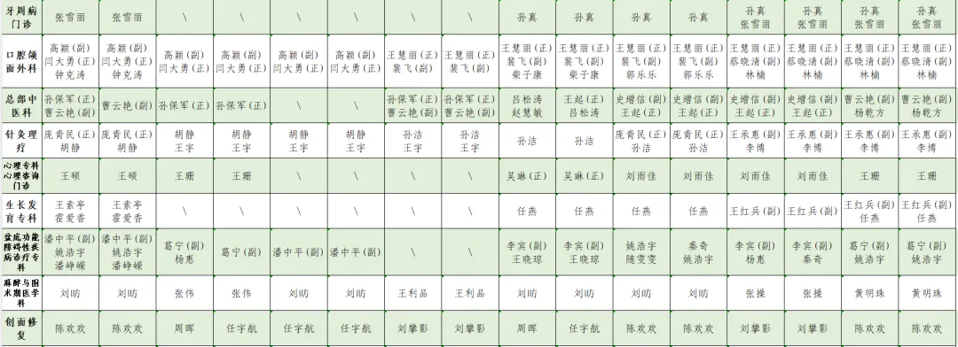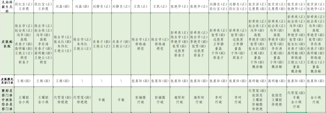 1.此表仅供参考,请以当日实际出诊专家为准。
