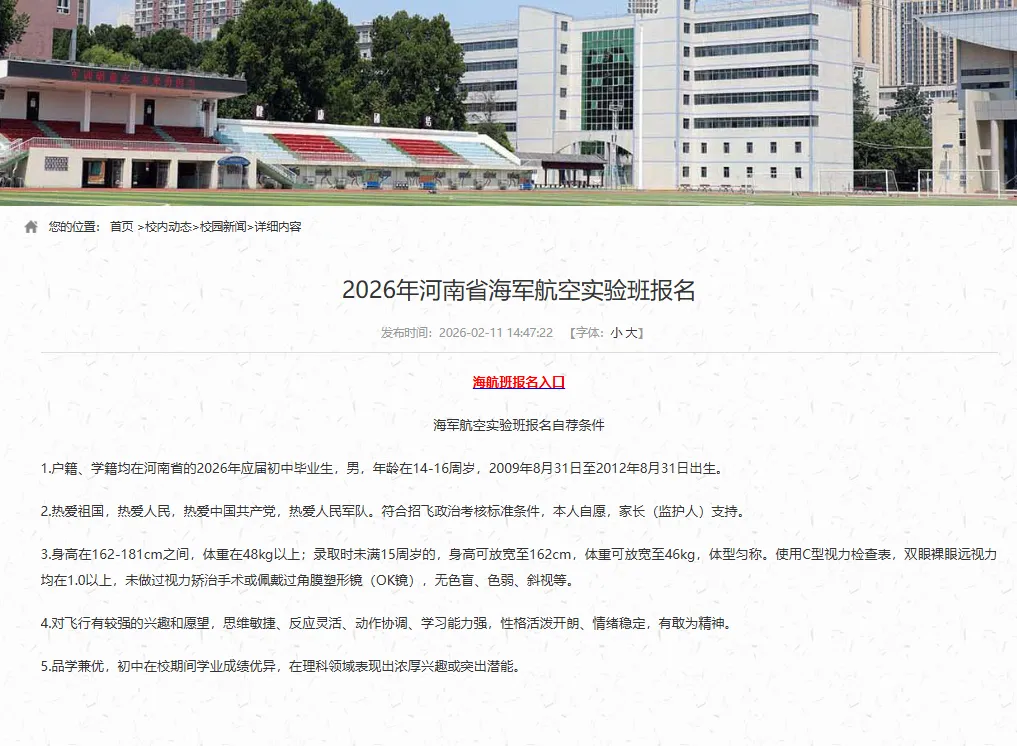 关注公众号,点击左下角“原文链接”即可跳转官网报名海军航空实验班报名自荐条件