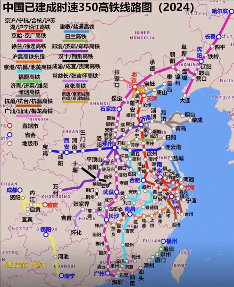 首先,“绕行郑州”使省内其他城市失去了横向联通。放射状的路网虽然达到了“四通八达”的目的,但却只是郑州一城的“四通八达”。其他城市之间来往如果要乘坐高铁,则必须绕行郑州,无形中加大了其他城市的物流成本与时间成本。比如:洛阳至南阳、信阳至周口等城市间出行均需北上绕行郑州,200公里直线距离高铁耗时3小时以上,与普速铁路相比差异极小,通勤效率反而降低。开封无南北向高铁,平顶山、漯河等城市横向联系非常薄弱。“绕行郑州”的单核依赖在高铁已经在全国普及的情况下已经成为地市经济发展的拦路虎。再比如:2025年河南省文旅事业大爆发,洛阳和开封成为全国旅游的热门城市,但蹊跷的是,终点或途经这两座旅游城市的高铁却十分紧俏,大部份游客需要先到达郑州再转车到洛阳和开封。生生把郑州抬成了“旅游城市”,把郑州东站抬成了“五A级旅游景点”。