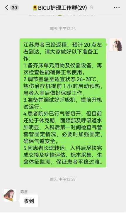 转运指令下达,烧伤中心立即启动危重症患者长途转运应急预案。