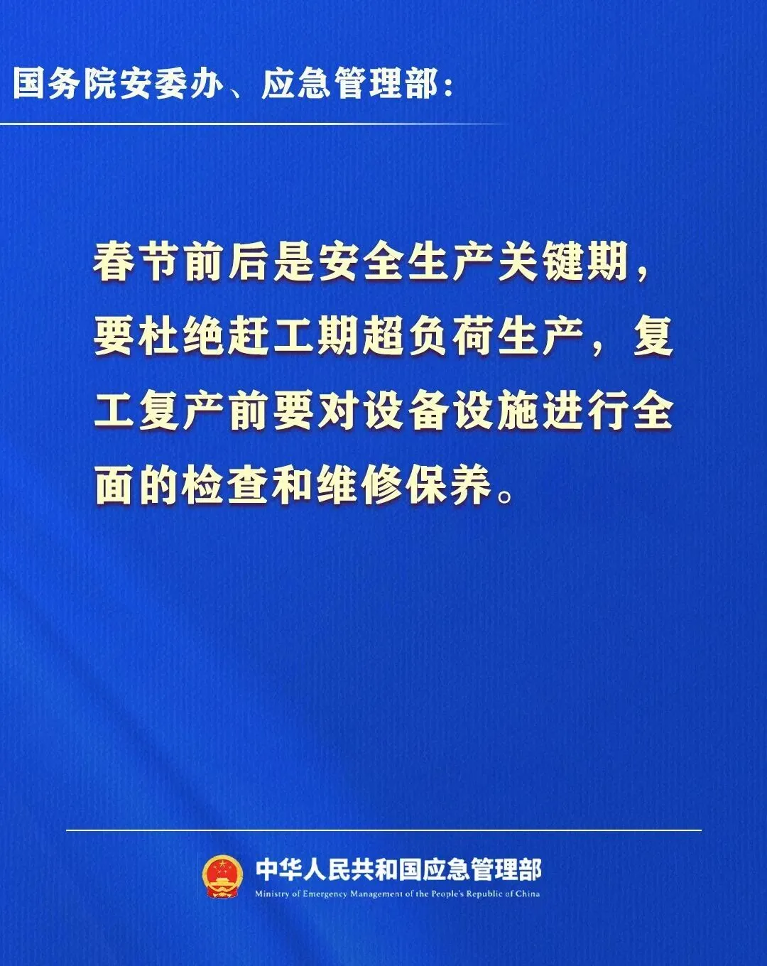 2月13日,国务院安委办、应急管理部发布2026年春节假期安全提示↓