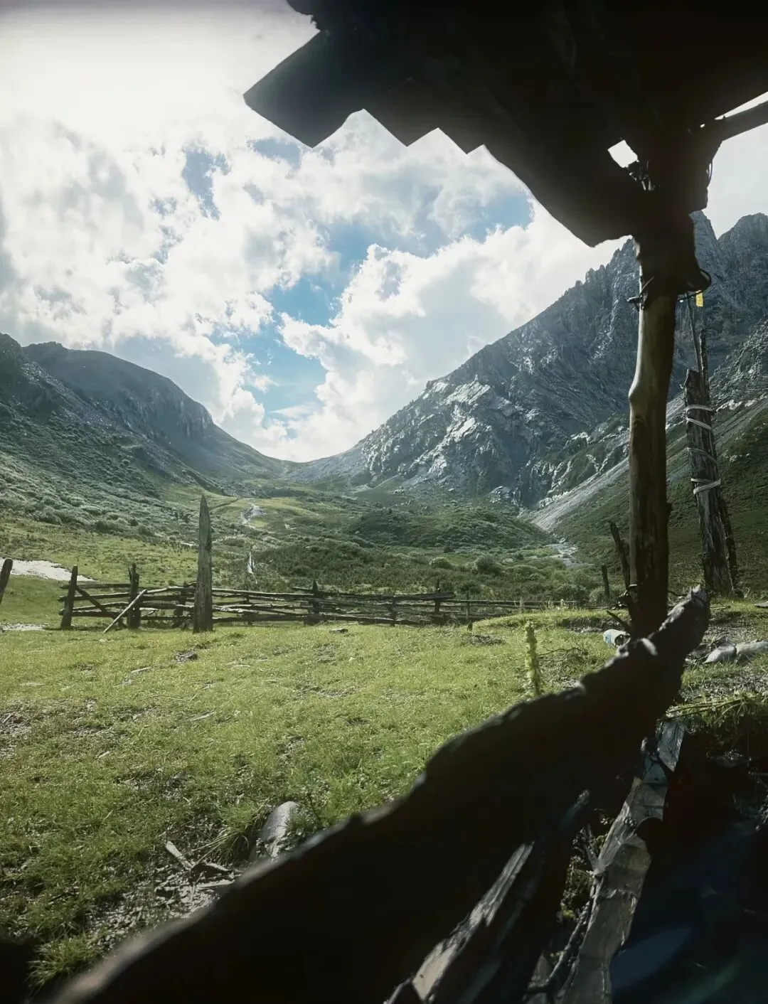 宝那西牧场,海拔3890米,是这条精华路线的终点,也是全程最奢侈的风景 🌿。四周群山环抱如巨大的城墙,中央草原坦荡如砥,牦牛三五成群,低头啃食带着高原阳光温度的草 🐃。