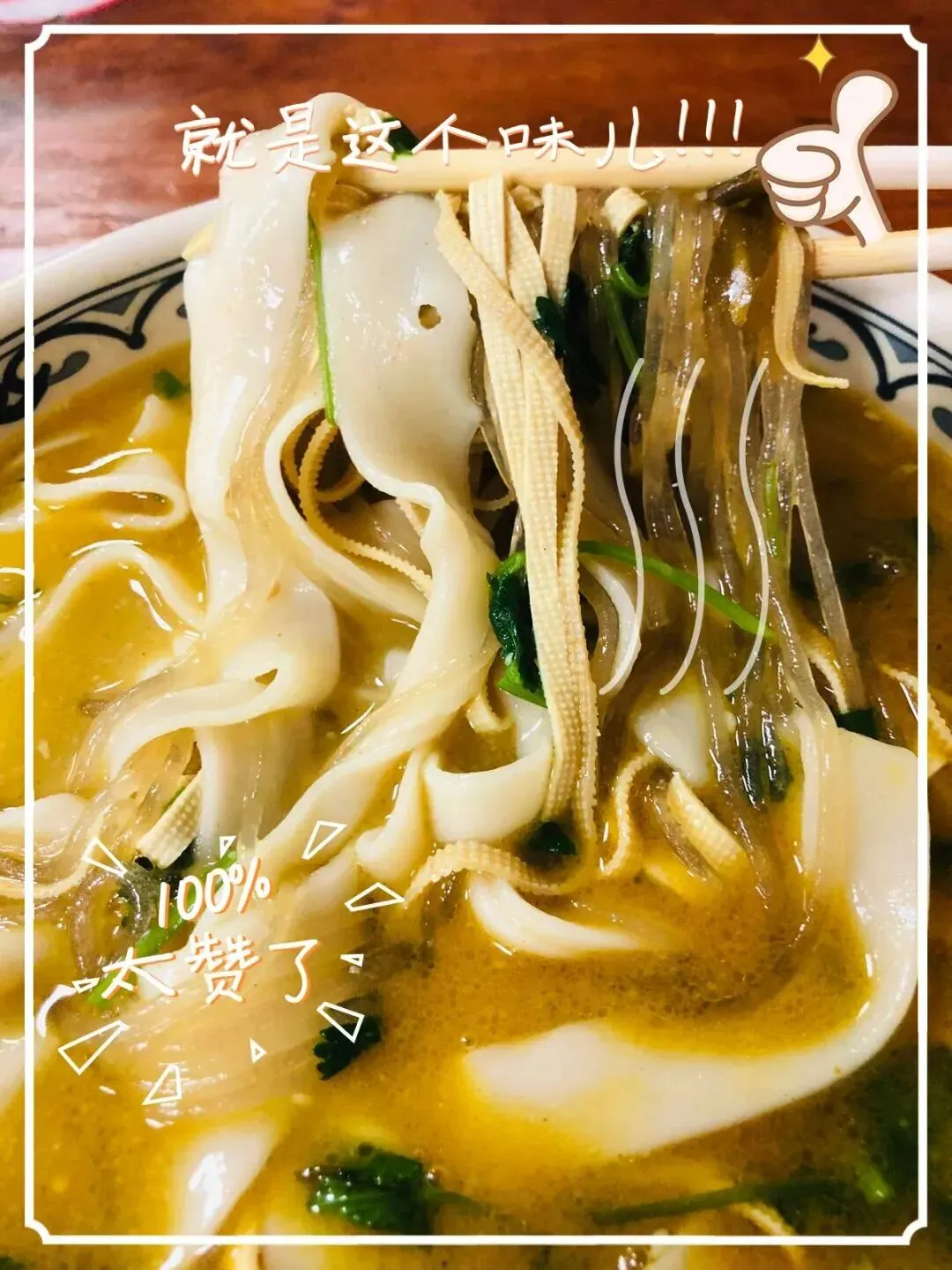 郑州这家店已经开四十多年了,他家的烩面是咖喱味烩面,来吃饭的顾客都是他家的回头客从小吃大的,每天用的高汤是用骨头熬制而成,烩面吃起来口感很筋道,汤汁醇厚鲜亮,值得推荐大家吃一次。
