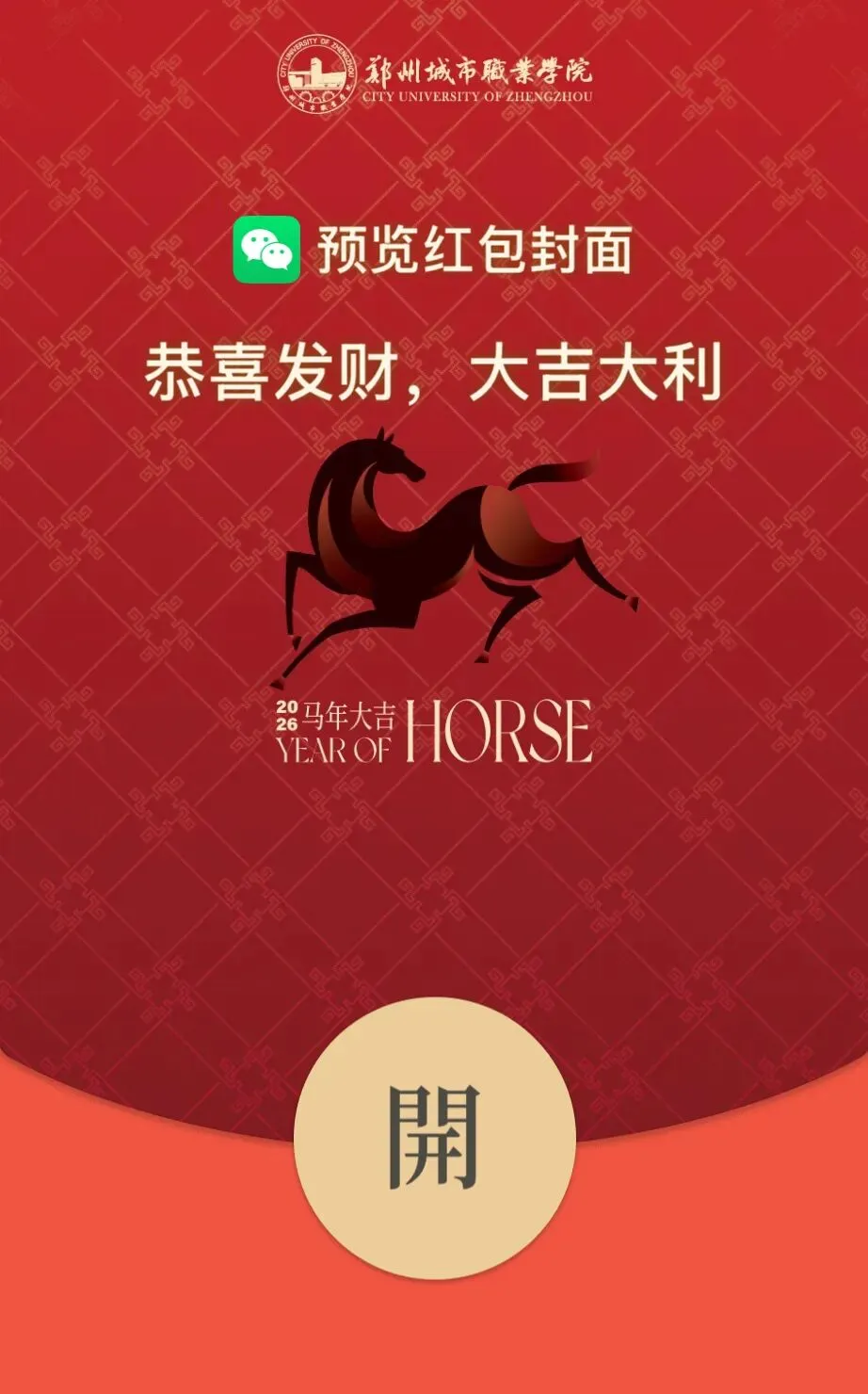 点赞评论《城院马年专属红包封面来啦!》