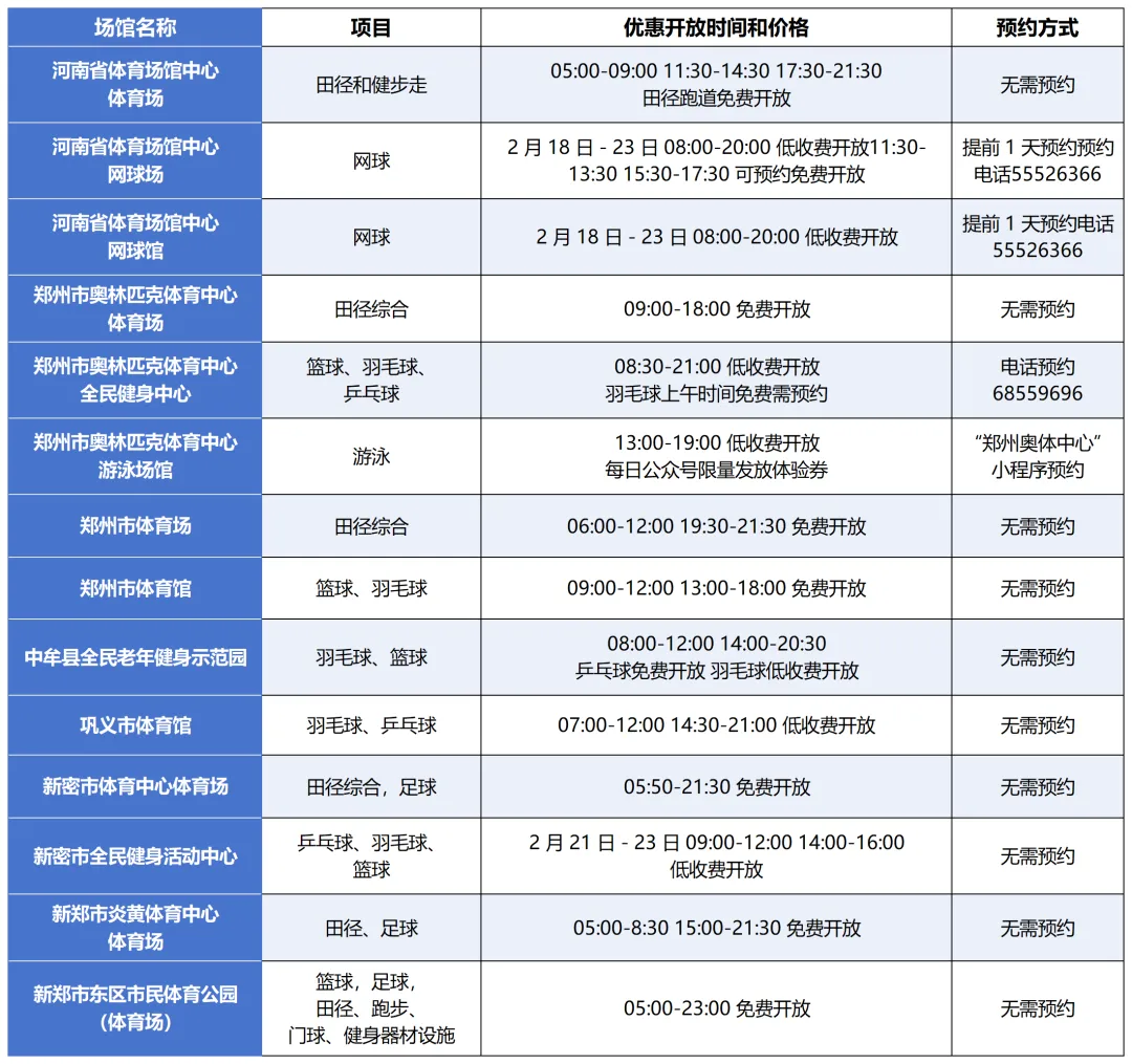 运动过大年!2026年春节假期郑州这些公共体育场馆免费开放→