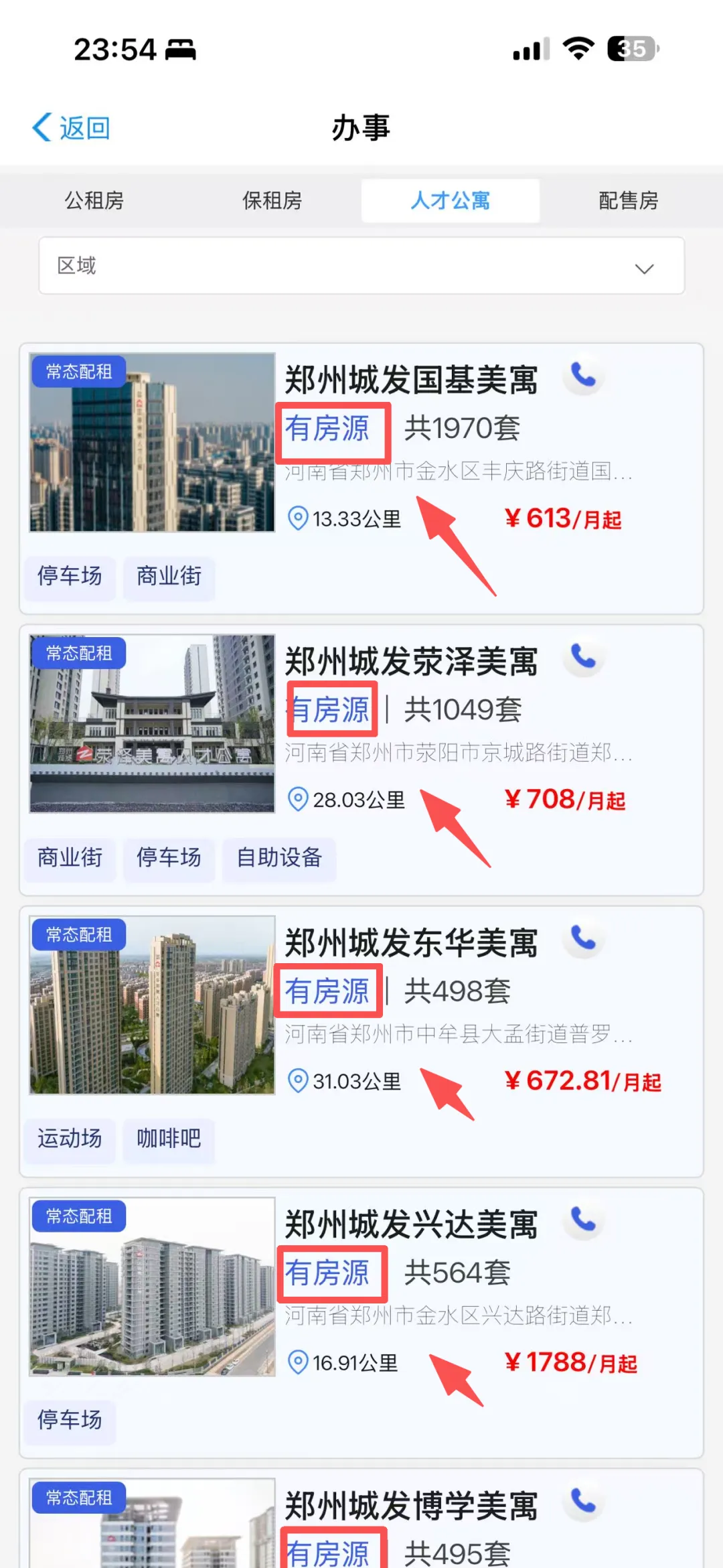 3️⃣点击“郑州市(除港区)人才公寓”。进入界面后点击【人才公寓】