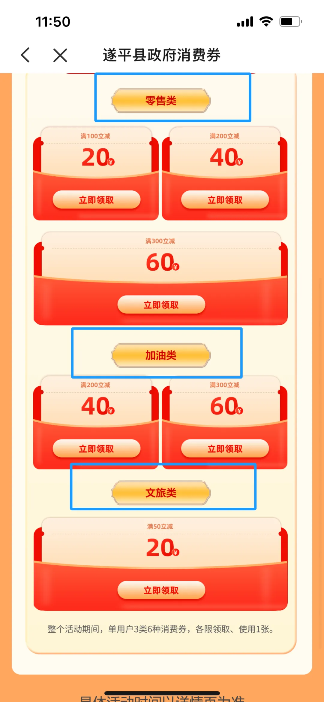 使用范围:零售/餐饮类消费券、成品油类消费券