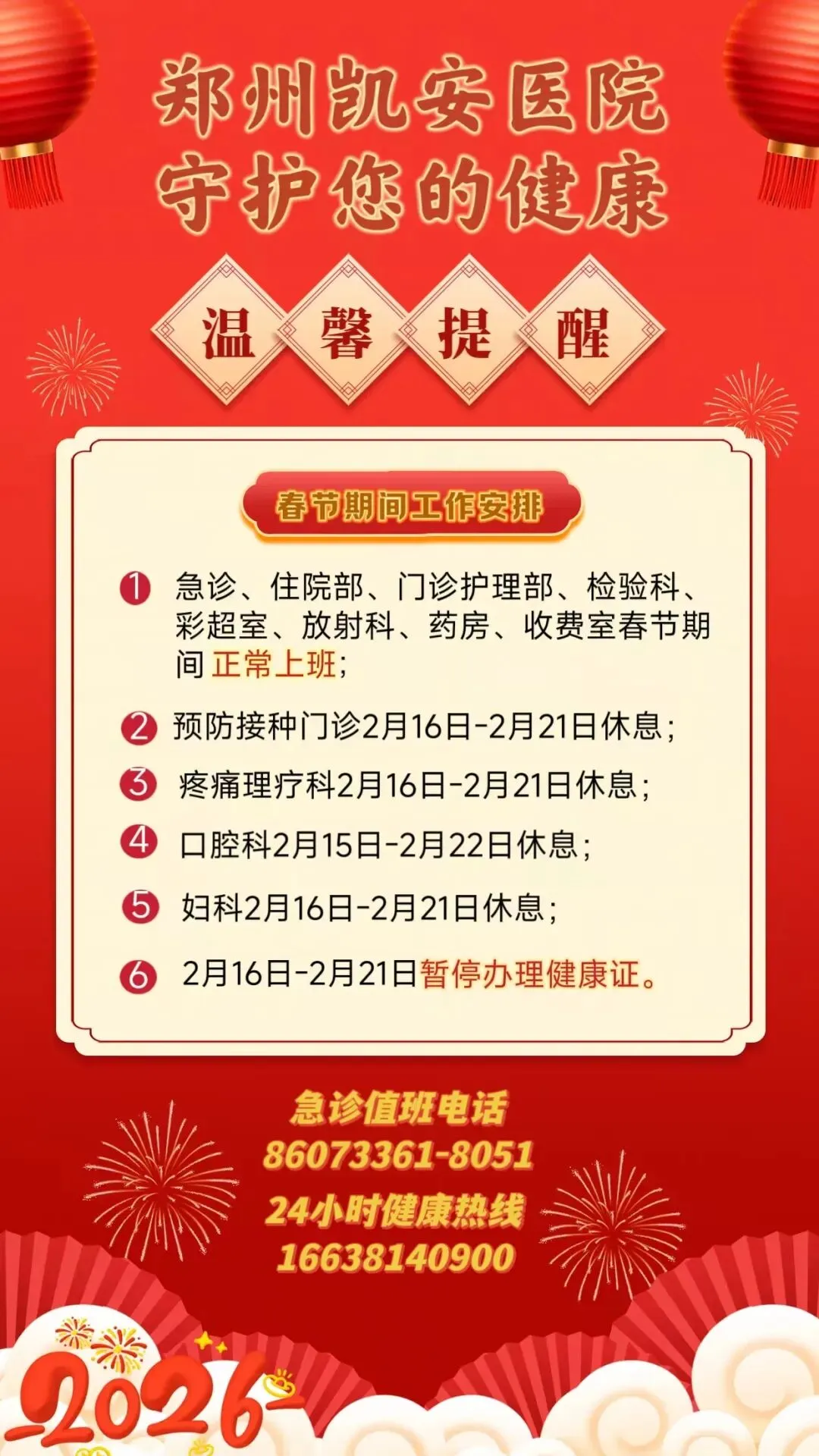 值此 2026 马年新春佳节,凯安医院全体医护人员,向广大朋友,致以最诚挚的新春祝福!