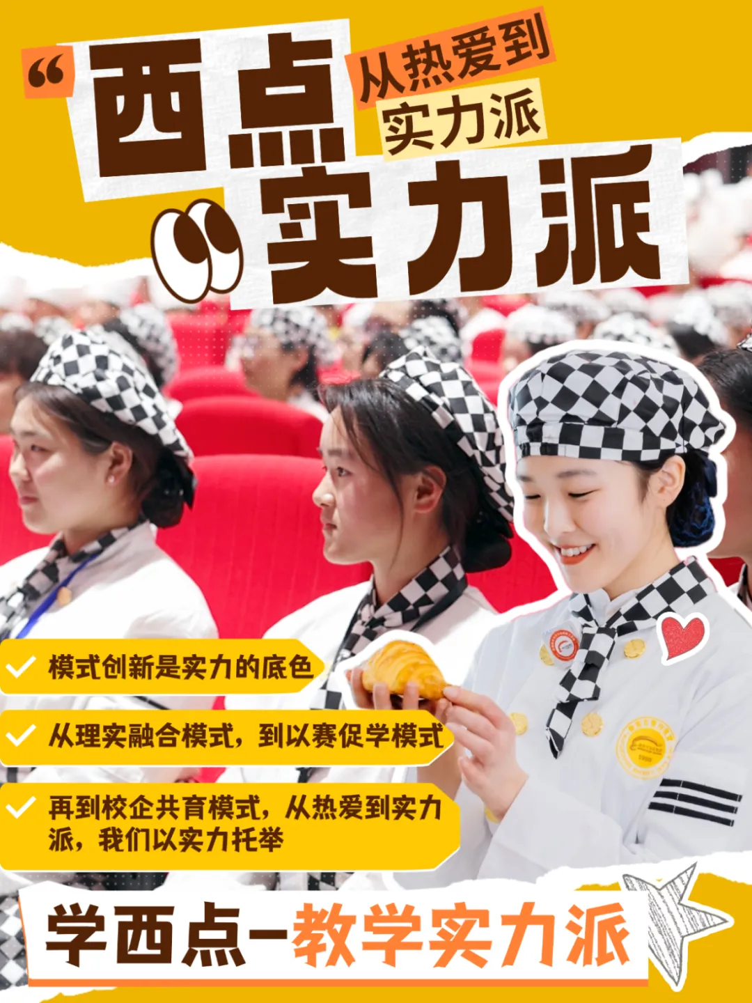 “热爱有成,乐在其中”不是口号,是我们的日常,你不是“成绩差”,你只是还没找到属于你的赛道。在这里,没有枯燥的板书,没有排名的压力,只有:✅ 从面团到成品的创造快感✅ 从课堂到赛场的实力进阶✅ 从兴趣到事业的热爱成长