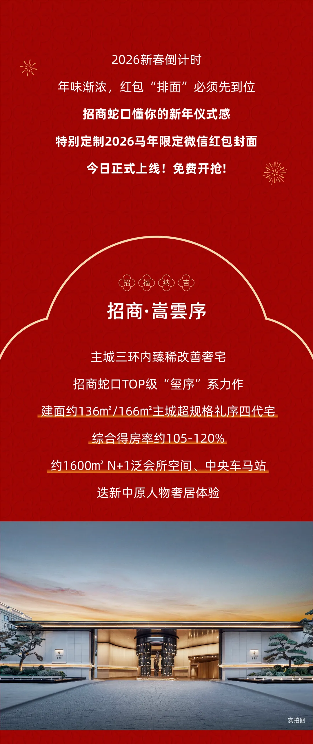 马上领红包!招商蛇口郑州2026限定红包封面,手慢无
