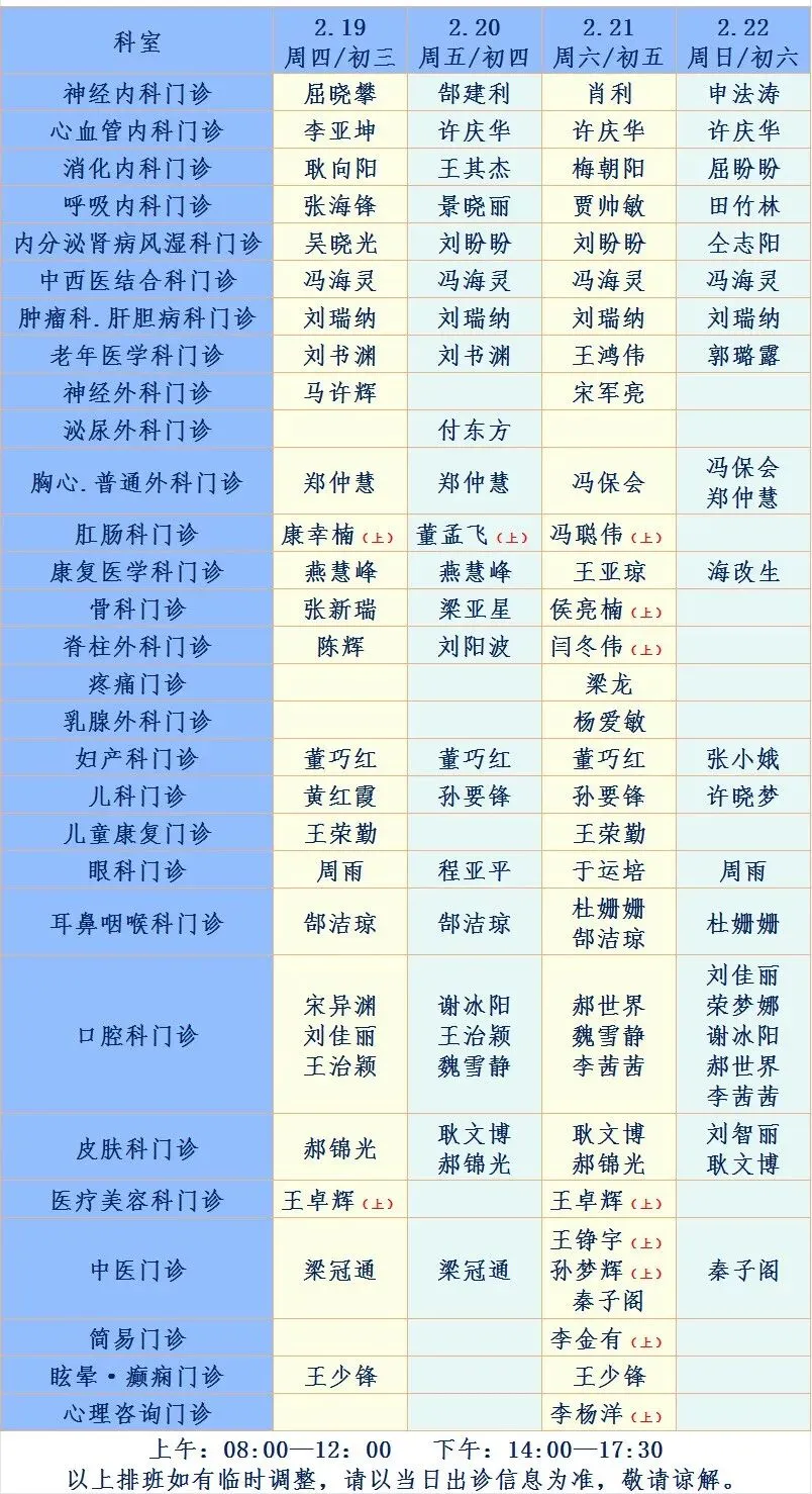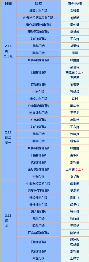 特将我院春节坐诊信息整理如下