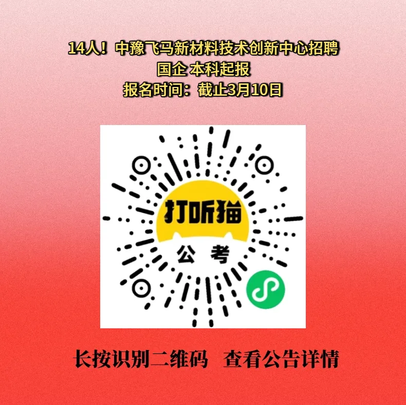 【郑州招聘】14人!国企!本科起报!中豫飞马新材料技术创新中心招聘!
