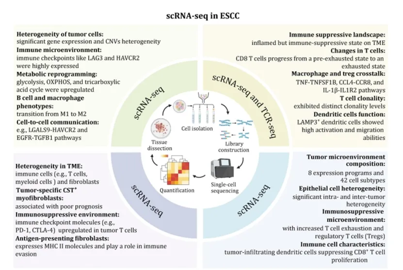 技术应用短板:单一组学技术仅能揭示肿瘤某一层面的分子变化,无法系统解析 ESCC 发生发展的完整机制,而多组学整合分析的标准化流程尚未建立。