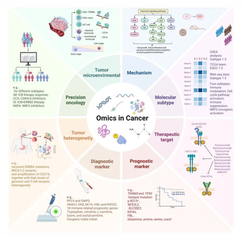 关键词:食管鳞状细胞癌、高通量组学、基因组、转录组、代谢组、蛋白质组、诊断标志物、预后标志物、治疗靶点、肿瘤微环境