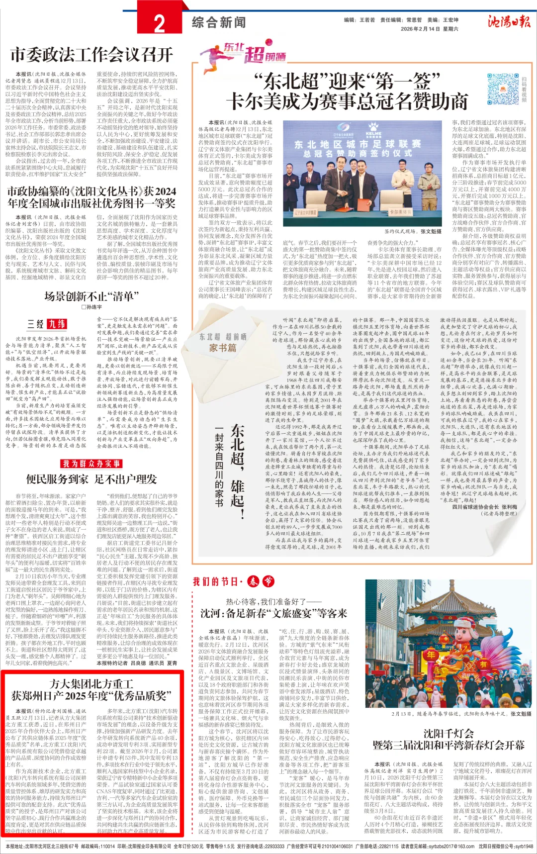 沈阳日报特约记者刘国栋、通讯员王跃 2月13日,记者从方大集团北方重工获悉,近日,在郑州日产2025年合作伙伴大会上,郑州日产公布了其供应链体系2025年度“优秀品质奖”名单,北方重工(沈阳)汽车转向系统有限公司凭借稳定卓越的产品品质、深度协同的合作成效榜上有名。