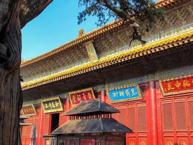 红墙绿瓦,雕梁画栋,