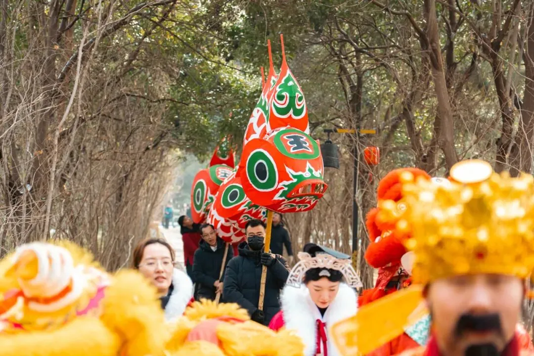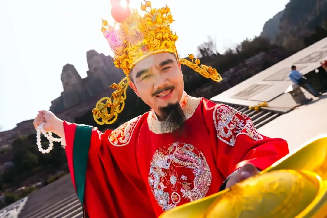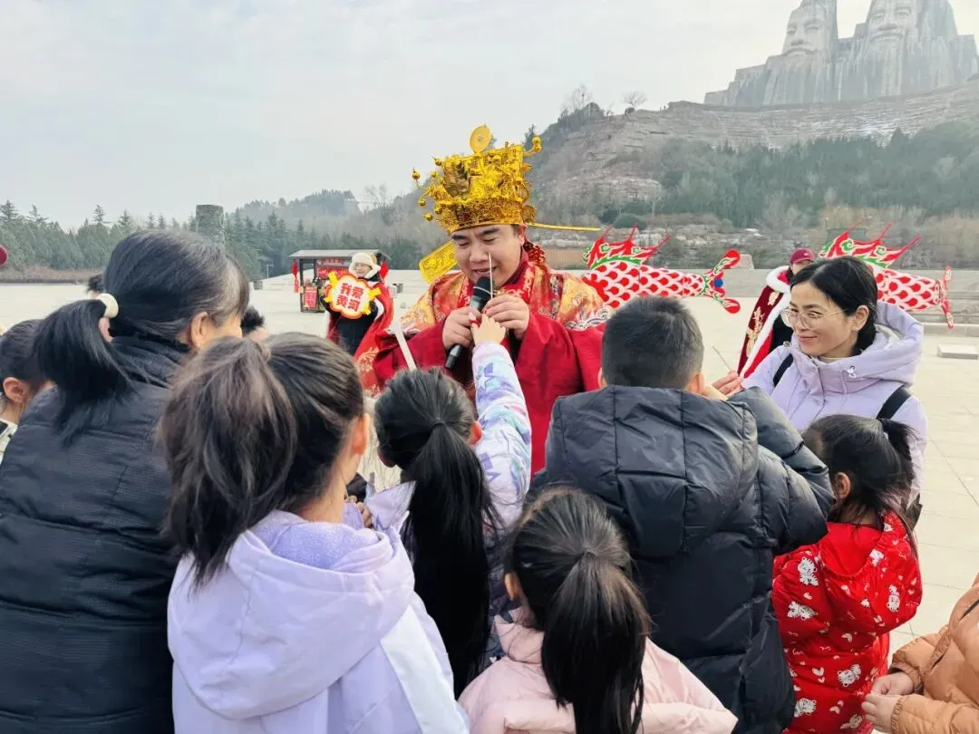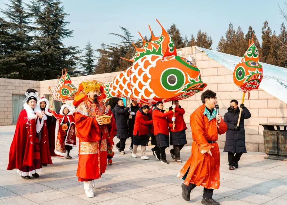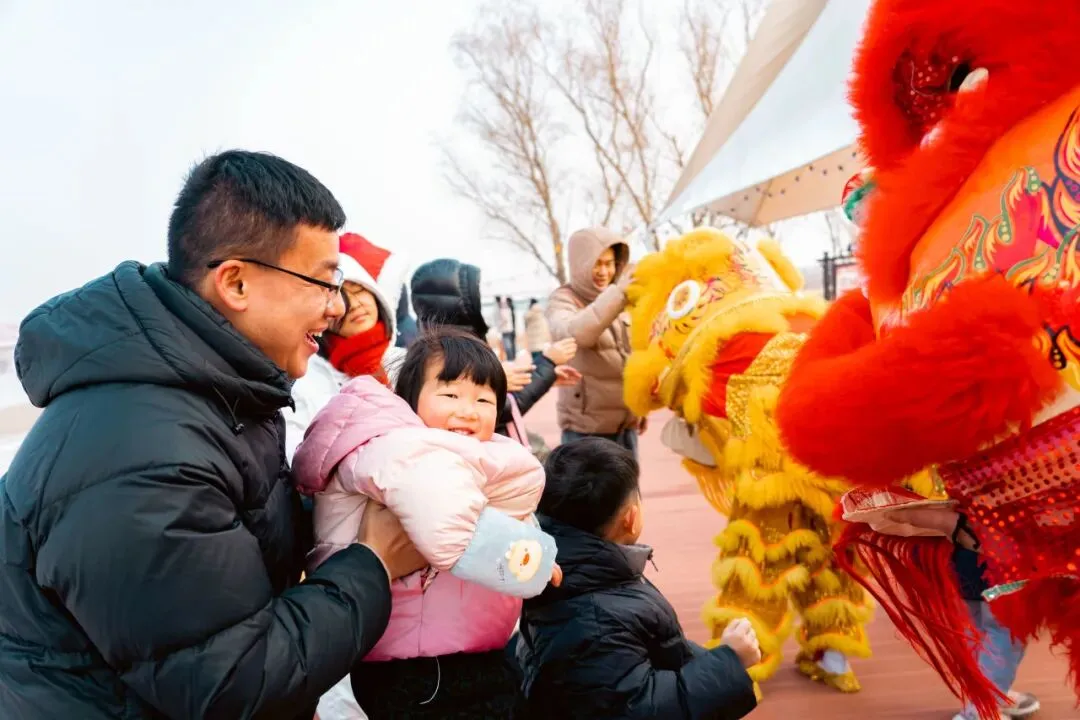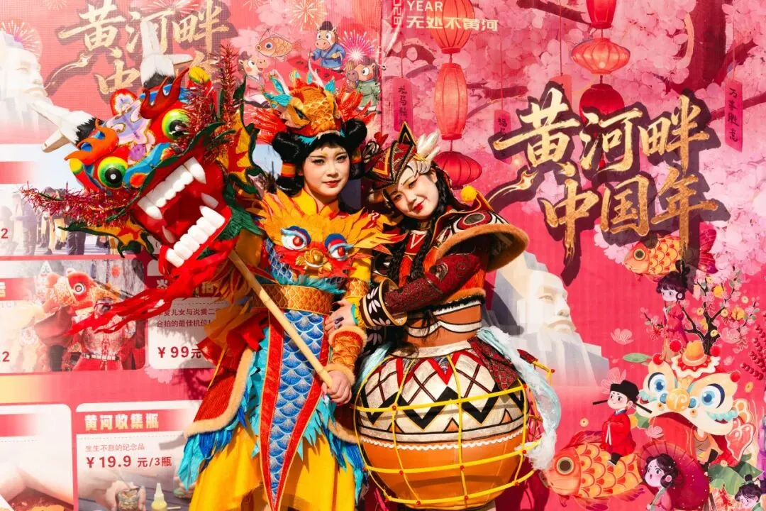 欢乐喜庆的巡游队伍,沿着黄河岸边行进,与游客互动,传递新春祝福,氛围热烈欢腾!还有财神送福,沿途发放小礼物哦~