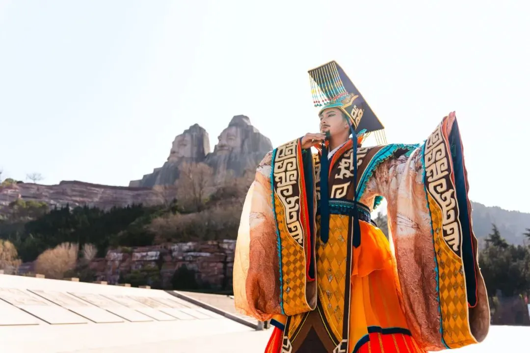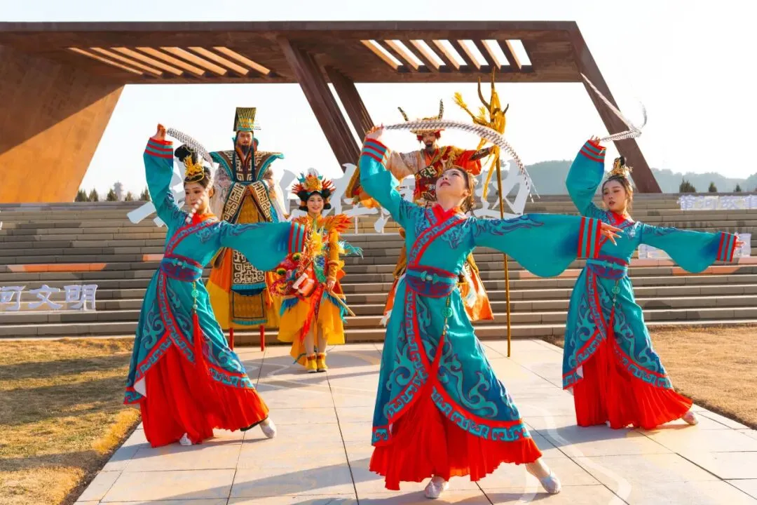 以黄河为背景的优美舞蹈表演,展现大河文化的韵律与力量。舞者身着传统服饰,配合音乐与黄河景观,呈现出一幅流动的文化画卷。