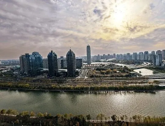郑东新区一圈高楼围着湖,地标“玉米”一亮灯,水面一照脸都显小一圈。
