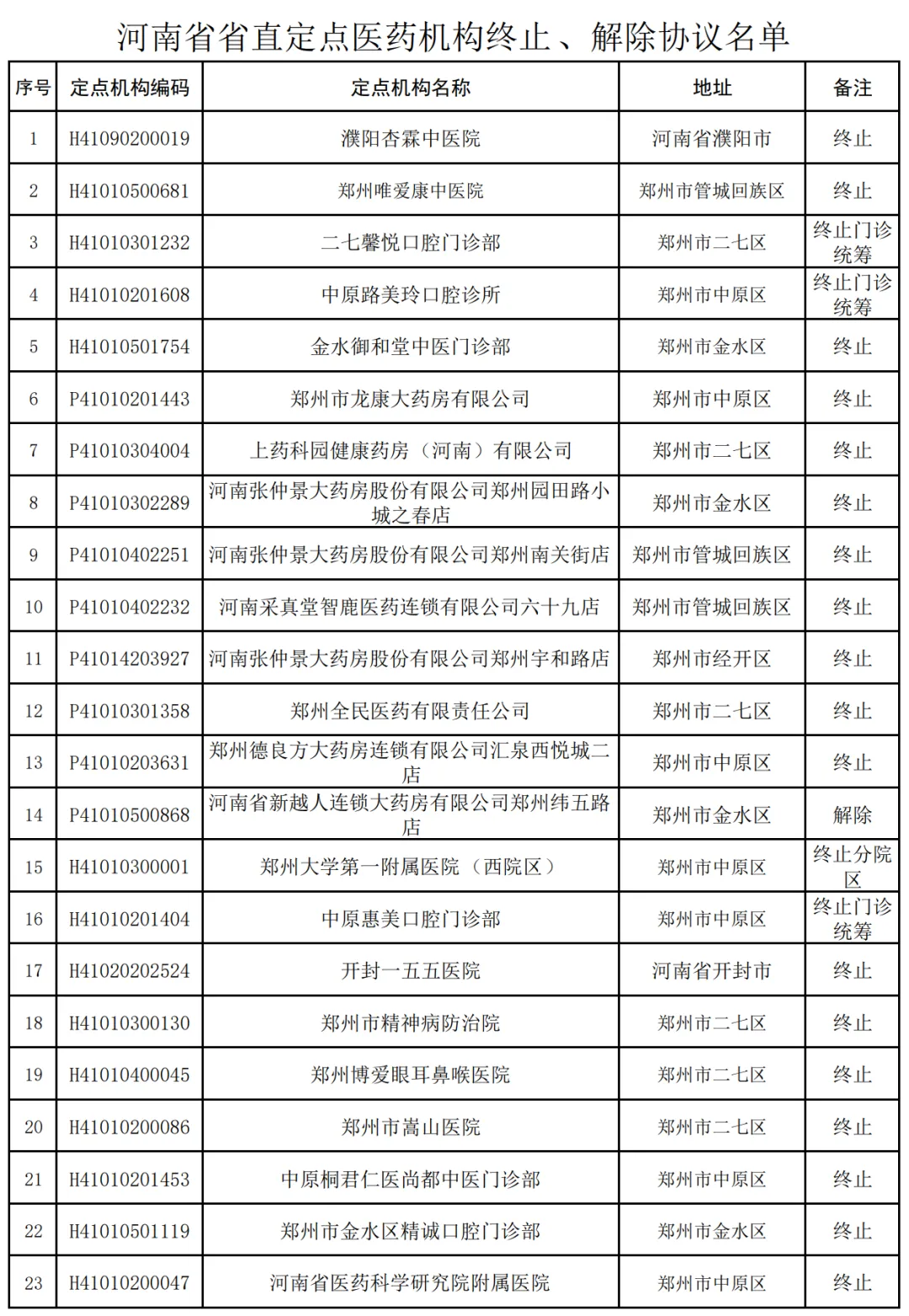 2月12日,河南省医疗保障局公布第四批河南省省直定点医药机构中止、终止、解除协议名单,共涉及95家机构。