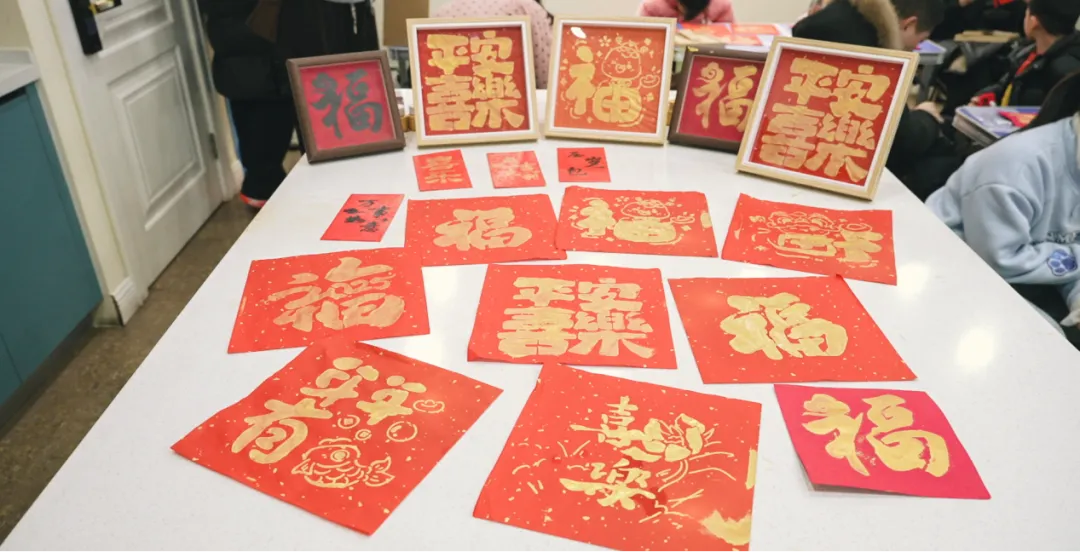 活动现场暖意融融,充满了欢声笑语。工作人员早早布置好活动场地,备好红色宣纸、福字模板、环保颜料、拓印工具等材料,向小朋友们耐心讲解了春节贴福字的传统习俗,介绍了福字拓印的制作步骤与小技巧。在志愿者的协助下,孩子们小心翼翼地将福字模板固定在红纸上,蘸取的料,轻轻按压、反复拓印。稚嫩的小手用力不均、颜料涂抹不均都是常态,但每一个认真的模样都格外可爱。