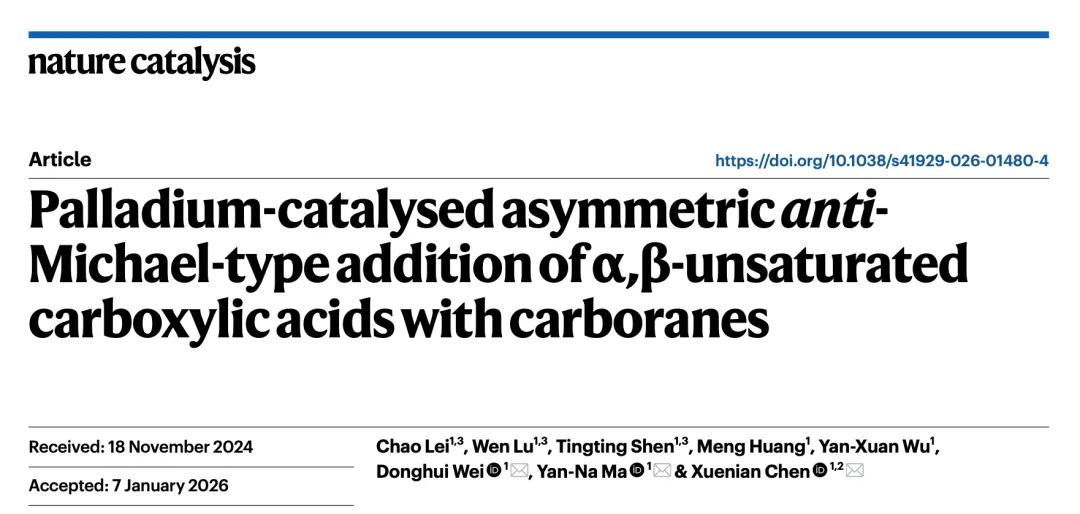 文章题目:Palladium-catalysed asymmetric anti-Michael-type addition of α,β-unsaturated carboxylic acids with carboranes