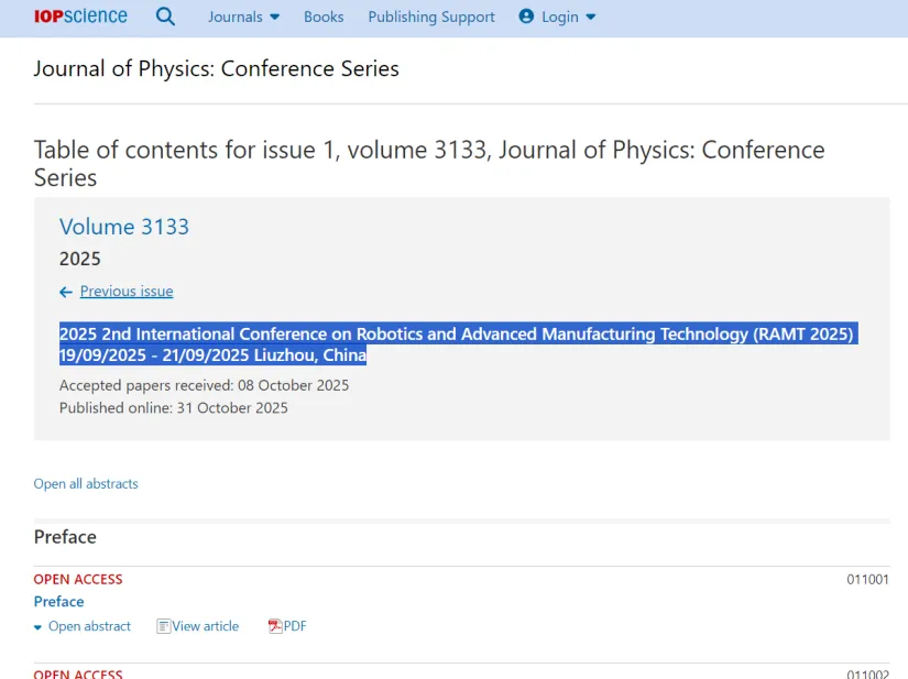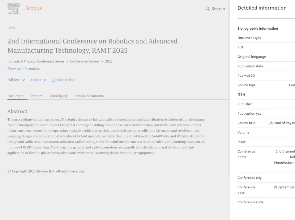 第三届机器人与先进制造技术国际学术会议(RAMT 2026)将于2026年9月11-13日在郑州举办。此次会议将围绕机器人、机电技术、机械及制造等领域的最新研究成果展开讨论,并广泛邀请了国内外领域内的著名专家与学者。会议旨在搭建一个供国内外高等学府、科研机构以及企业界等专业人士进行学术交流和成果展示的平台。RAMT 2026诚意邀请相关领域的专家学者参与交流,共同推动学科发展和行业进步。