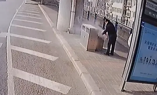 令人意想不到的是,就在石许慧刚回到驾驶座时,站台旁的垃圾桶再次复燃。石许慧再次拿起车载灭火器冲下车。