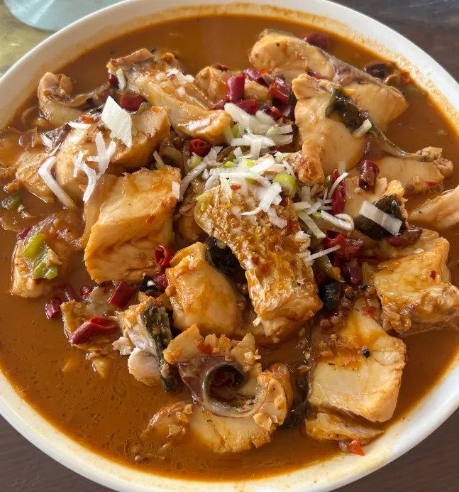 丹江红烧鱼做法简述:这菜讲究个“透”字。鲜鱼切大块,不过油炸,而是用菜籽油两面煎黄,锁住肉汁。然后扔进大把的姜蒜、干辣椒爆香,倒进本地的黄酒和酱油,加水没过鱼身。大火烧开转小火慢炖,最后收汁时撒一把青蒜苗。吃的时候,一定要蘸着那浓稠的汤汁,鱼肉吸饱了味,入口即化,又辣又鲜。
