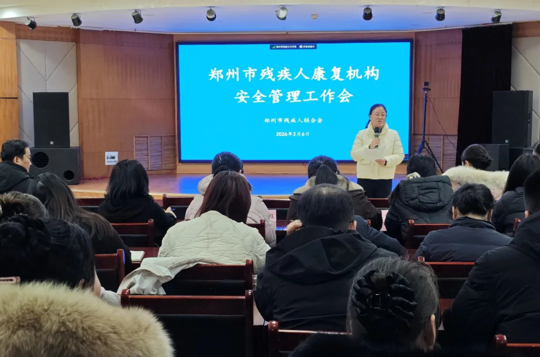 2026年2月6日,郑州市残联召开全市残疾儿童康复救助定点机构安全管理工作会议。全市各开发区、区县(市)残联主管副理事长、康复部长及70余家残疾儿童康复救助定点机构工作人员近200人通过线上线下方式参会。