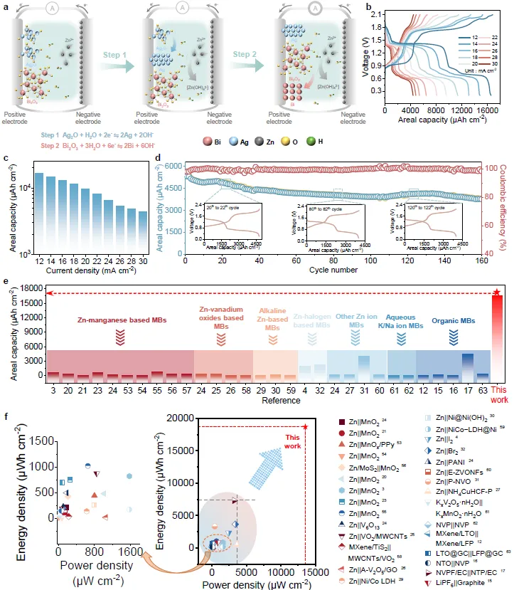 图3. Zn||Bi₂O₃@Ag₂O微型电池的电化学性能
