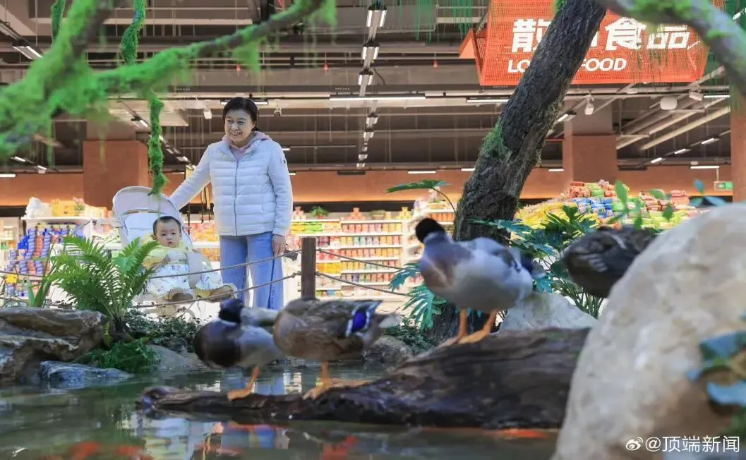 每家门店设置150-200平方米的景观区,包含假山、流水、绿植、绿头鸭等元素,营造“逛公园”的沉浸式体验。