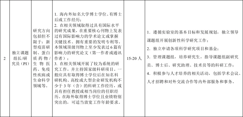 (二)独立课题组长/研究员(PI)应聘要求