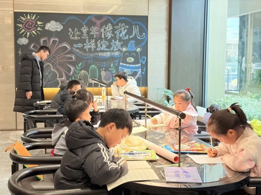 针对寒假期间业主家庭需求,越秀贴心打造寒假托班,越秀·天悦江湾泛会所内,友邻专业教师坐镇,兼顾学业答疑与兴趣培养,解决家长后顾之忧,让孩子学习、娱乐、休息三不误,在温暖氛围中自由生长、收获成长。
