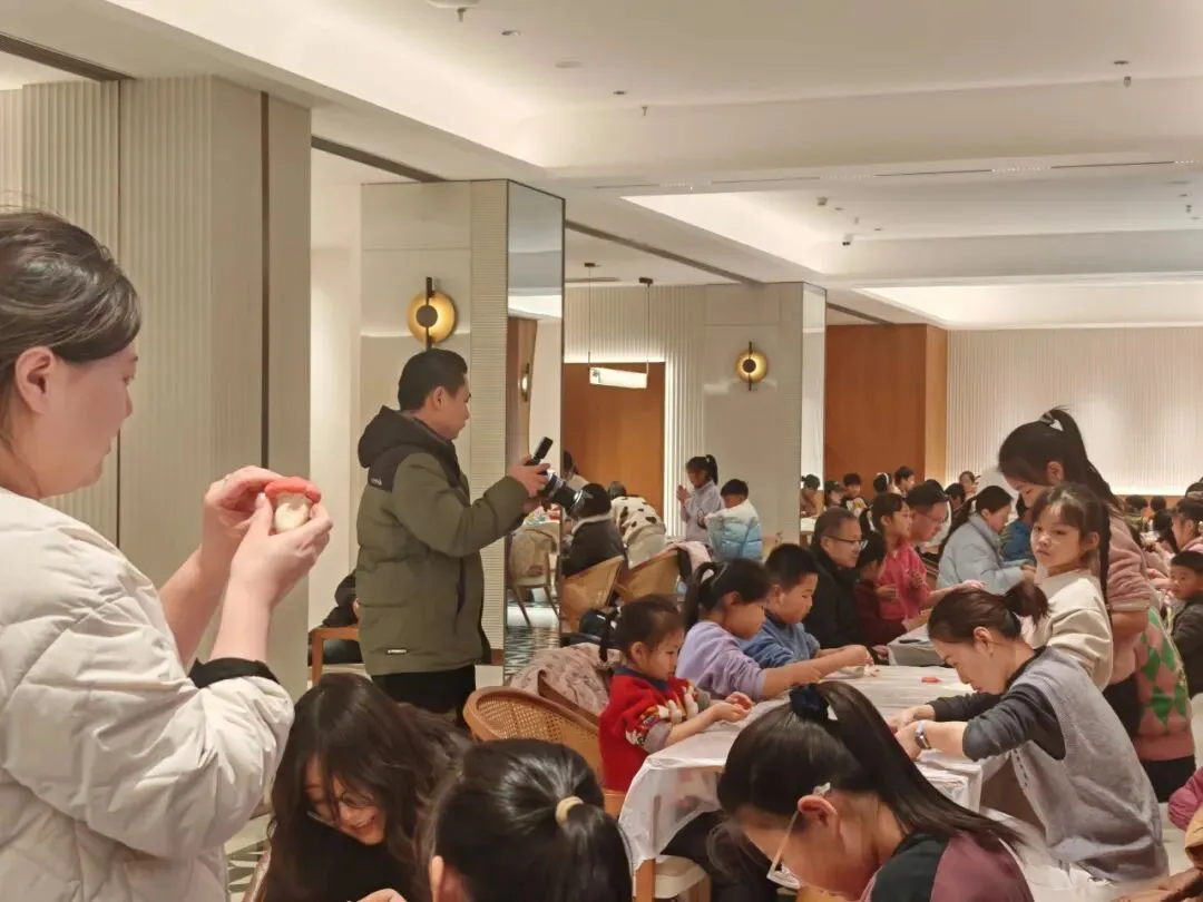 在越秀·天悦江湾业主食堂内,家长与孩子携手开展非遗花馍制作,手握花模动手创作,孩子们在老师指导下揉面塑形,将普通面团变成造型可爱的花馍作品,将年味与福气融入指尖,重拾童年非遗记忆,在动手实践中传承非遗文化。
