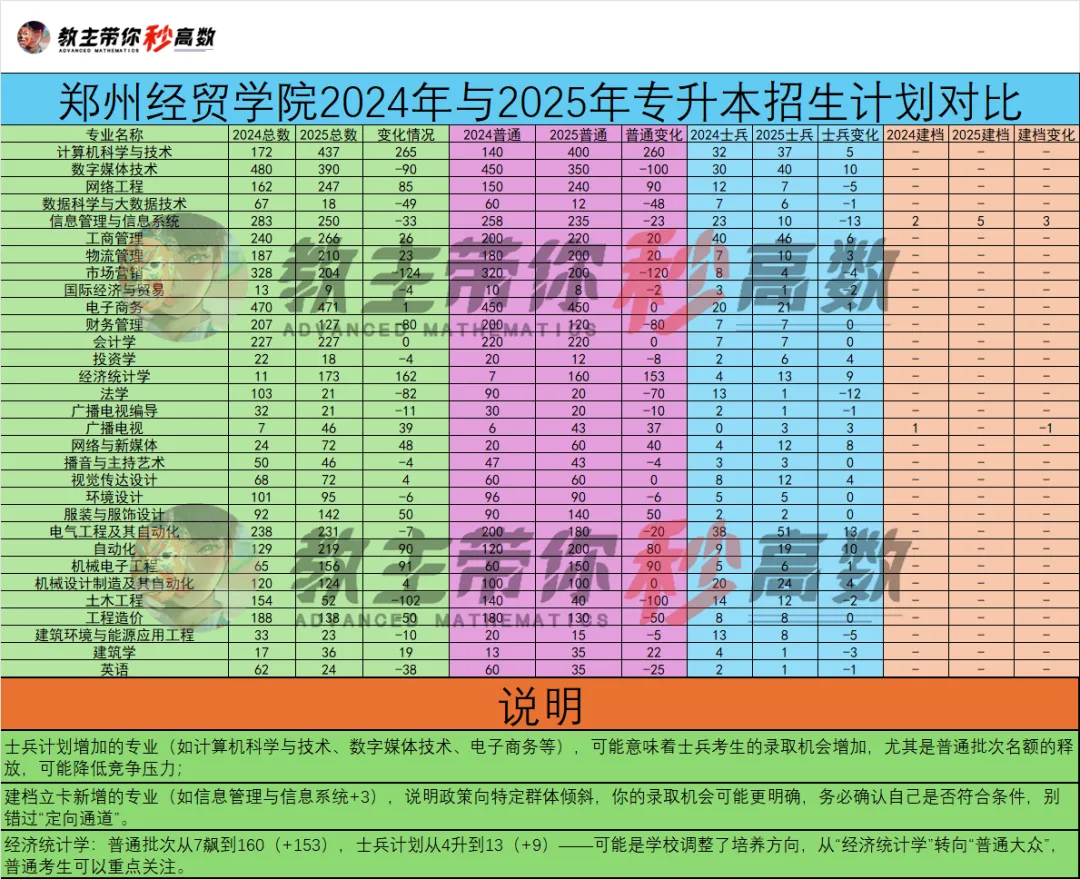 专业设置:设有 14 个二级学院(部),开设 48 个本科专业,涵盖经、管、工、文、艺、教等学科门类。其中,会计学、市场营销为省级一流本科专业,电子商务、金融学等专业紧密对接中原地区商贸物流、金融服务等产业发展需求,形成了 “经贸引领、产教融合” 的专业布局。