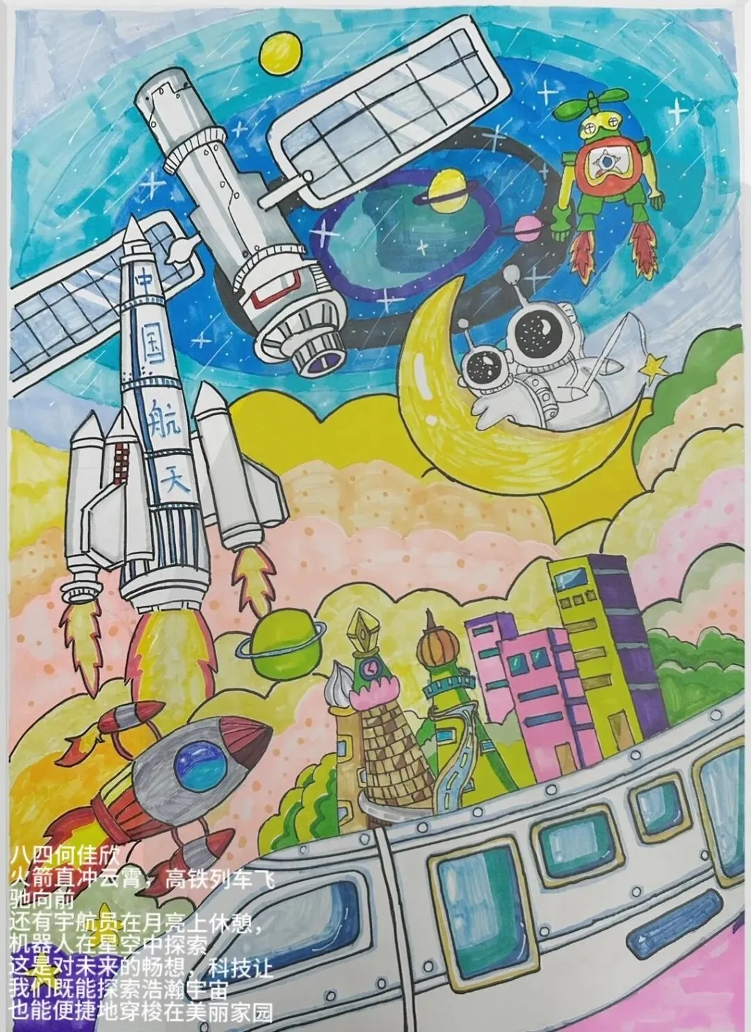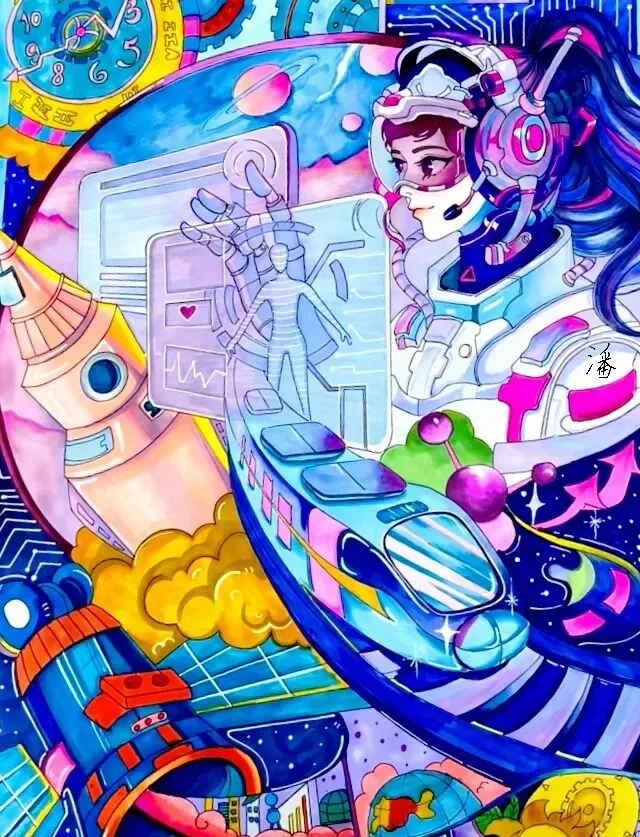 科幻绘画篇则展示了少年们天马行空的想象力。一幅幅色彩斑斓的画作,既是科学探索的火种,也是未来创新的萌芽。