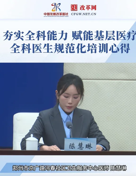 发布会上,由郑州市第九人民医院领办的冯春社区卫生服务中心医师陈慧琳,作为河南省基层医疗卫生机构优秀代表受邀参会并发言。她在发布会上全面介绍了冯春中心在家庭医生签约服务、慢性病规范化管理、居民健康宣教、老年健康服务、基本医疗与公共卫生融合等方面的扎实举措与亮眼成绩,用真实生动的一线故事,讲述基层医护人员扎根社区、坚守岗位、用心守护群众健康的感人瞬间,充分展现了新时代河南基层医疗机构的专业实力与基层医务工作者恪尽职守、服务为民的良好风采。