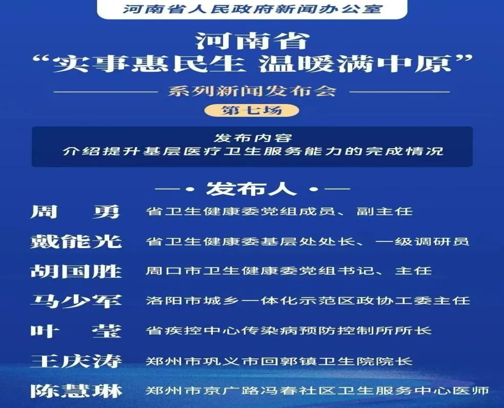 近日,河南省人民政府新闻办公室隆重举办“实事惠民生 民生温暖满中原”系列新闻发布会,专题发布全省提升基层医疗卫生服务能力民生实事完成情况,系统总结全省基层医疗体系建设、服务能力提升、便民惠民举措等方面的丰硕成果,全面展现河南持续筑牢基层健康防线、不断提升群众就医获得感与幸福感的亮眼成效。