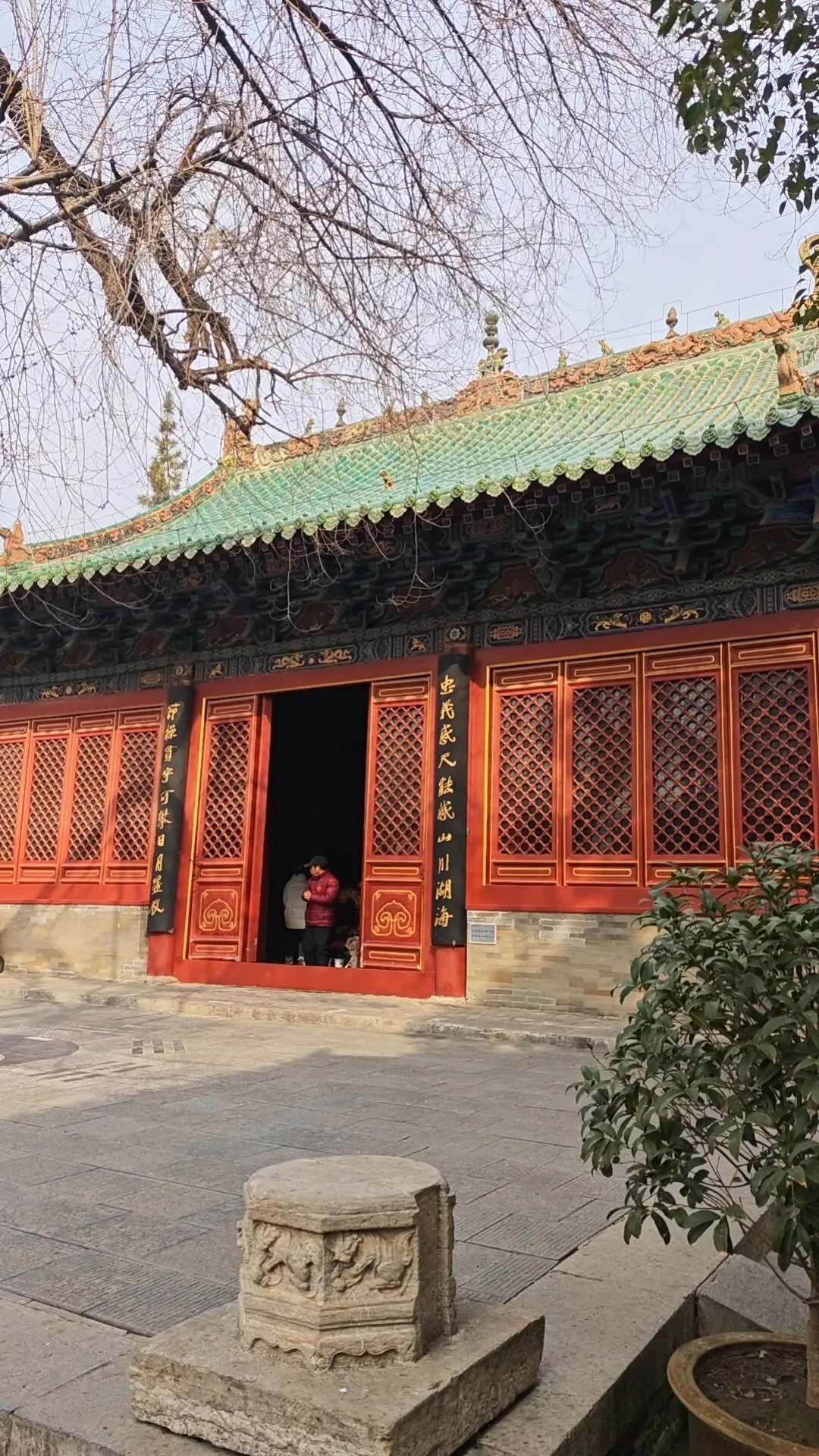 农历二零二五年岁尾,乙巳蛇年最后一个传统节日“祭灶”,也叫小年。耆老无聊,悠悠荡荡坐公交199路来到郑州老城区“商城路”上的“郑州城隍庙”打卡。郑州城隍庙坐北朝南,临街山门墙上镶嵌两块匾额,一块匾额乃郑州城隍庙简介,一块河南省文物保护单位匾额。郑州城隍庙被河南省人民政府于一九六三年六月二十日公布为“文物保护单位”。郑州城隍庙简介,城隍庙始建年代不详,大致建于唐宋年间,到明中叶“弘治”年间重修城隍庙碑,清康熙年间再次重修碑文,现存山门,二门,戏楼,大殿,后寝宫等建筑群。
