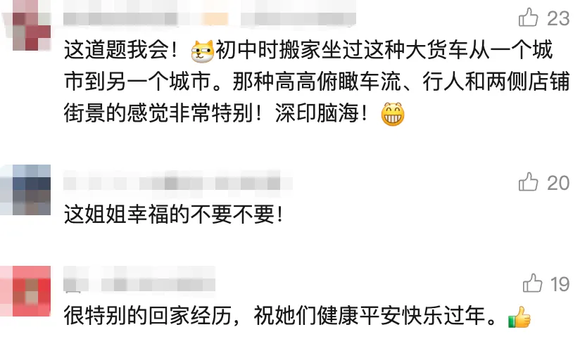 王女士介绍,自己在上海上班,临近过年一直没抢到票,“我就联系了一下我弟,问他能不能顺路把我带回去。刚好我们的时间合适,就成行了。然后在坐车的过程中,我随手拍了一条视频发到网上,现在有1000多万的播放量,我真的有点惊讶。”