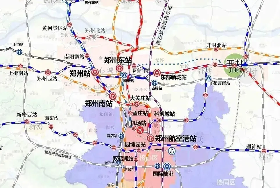 作为建设中的国家中心城市及国际性综合交通枢纽城市,郑州目前已经有郑州站、郑州东站、郑州西站、航空港站以及正在建设的郑州南站,根据《郑州市城市综合交通体系规划(2021-2035)》批后公示:郑州将迎来第6座火车站——东部新城站。