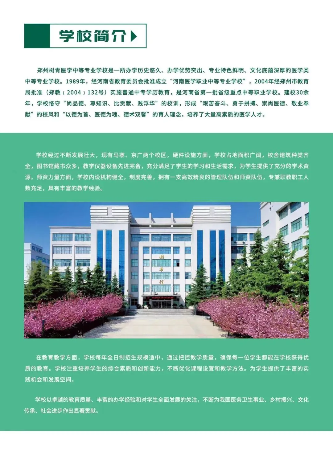 >郑州树青医学中等专业学校2026年招生简章(郑州健康学院本科师资,本校升学有优势)