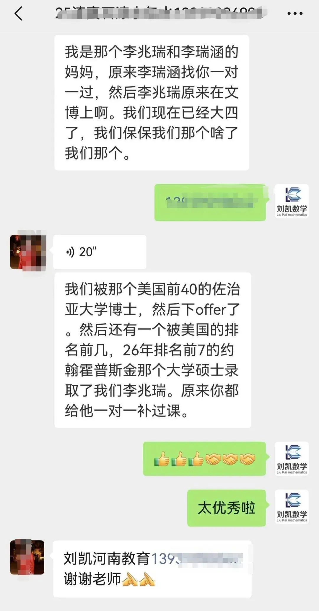 家长在微信里激动地说:“原来你都给他一对一补过课,现在孩子能走到世界顶尖学府,真的离不开当年的扎实基础!”