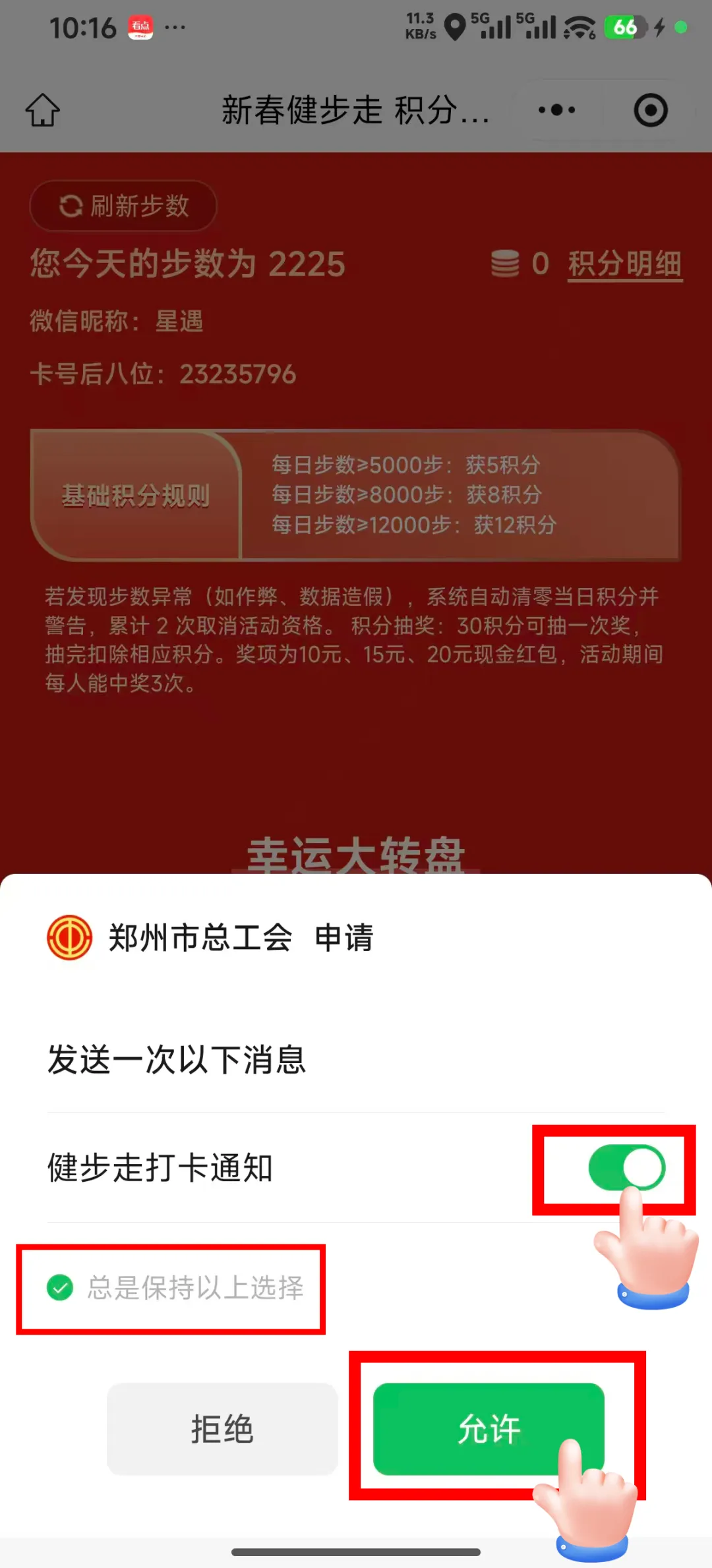 职工可实时在活动页面查看个人步数、积分,分享活动至朋友圈。
