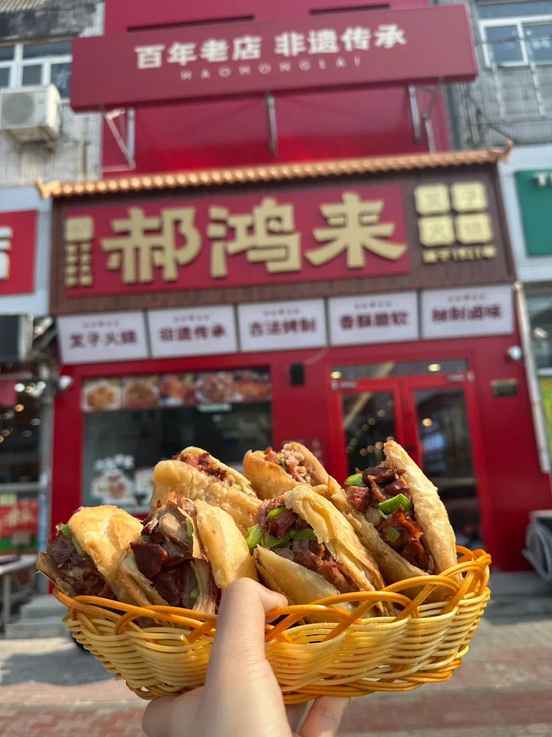 「早餐」随便找家路边摊,来一套「大饼卷肉」。唐山的大饼卷肉是实诚的艺术,熏肉肥而不腻,配上清爽的黄瓜条,一口下去,满足感爆棚。
