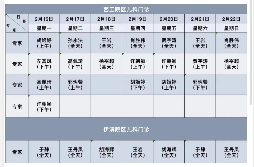 郑州大学附属洛阳市中心医院儿科/儿保门诊2026年2月16日—2026年2月22日专家坐诊时间