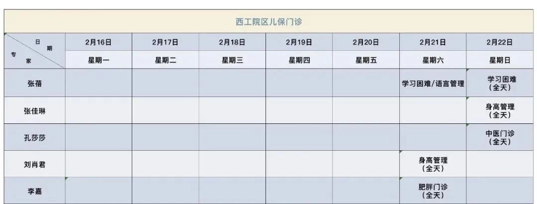 排班 儿保门诊地址:南门诊楼1楼(医院门诊楼对面,中州中路南侧)